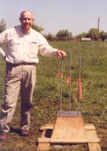 Lower left: On May 2nd, 2002, ground was broken for the construction of Land of Oz Observatory. Here, the first spadeful of dirt is lifted out of the